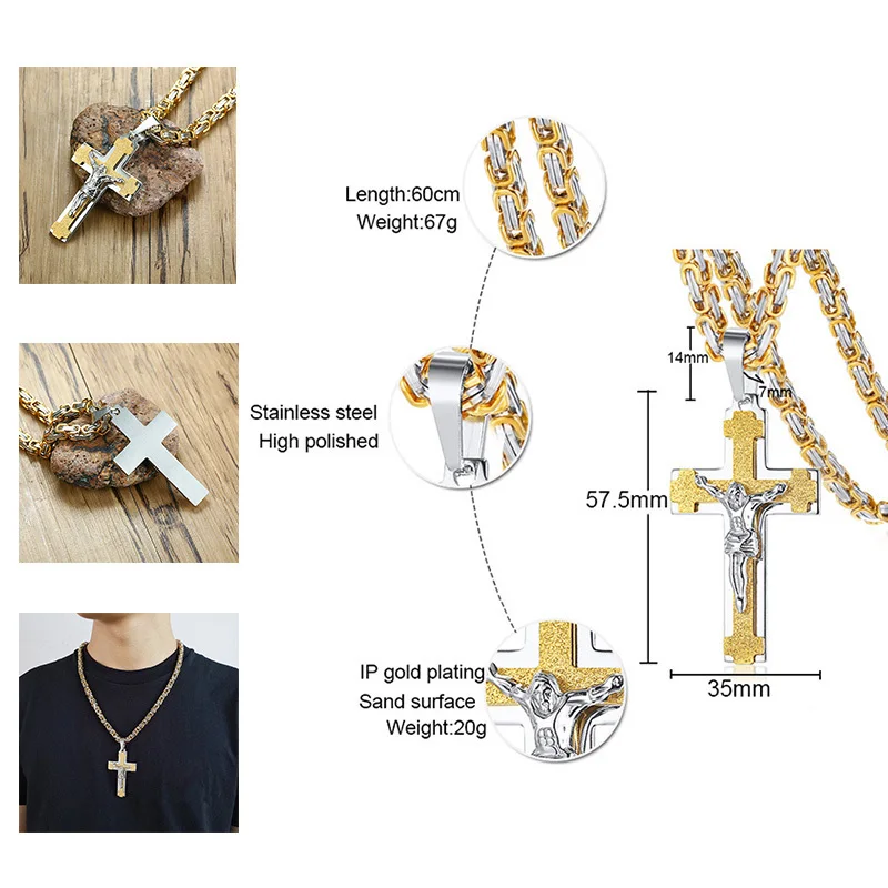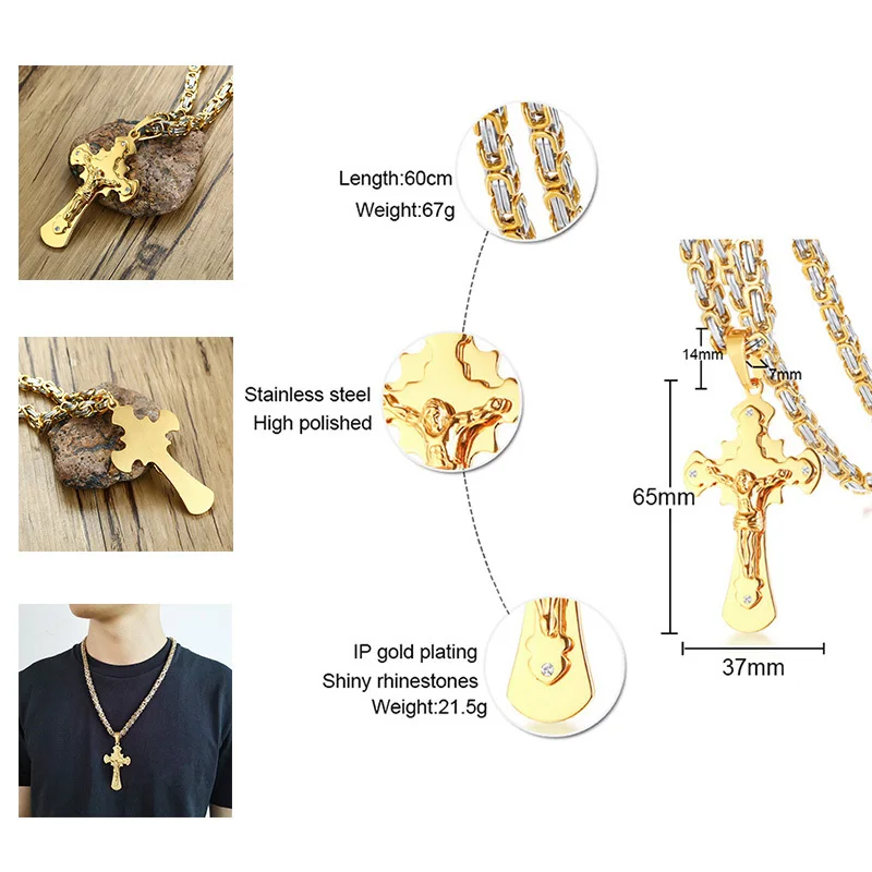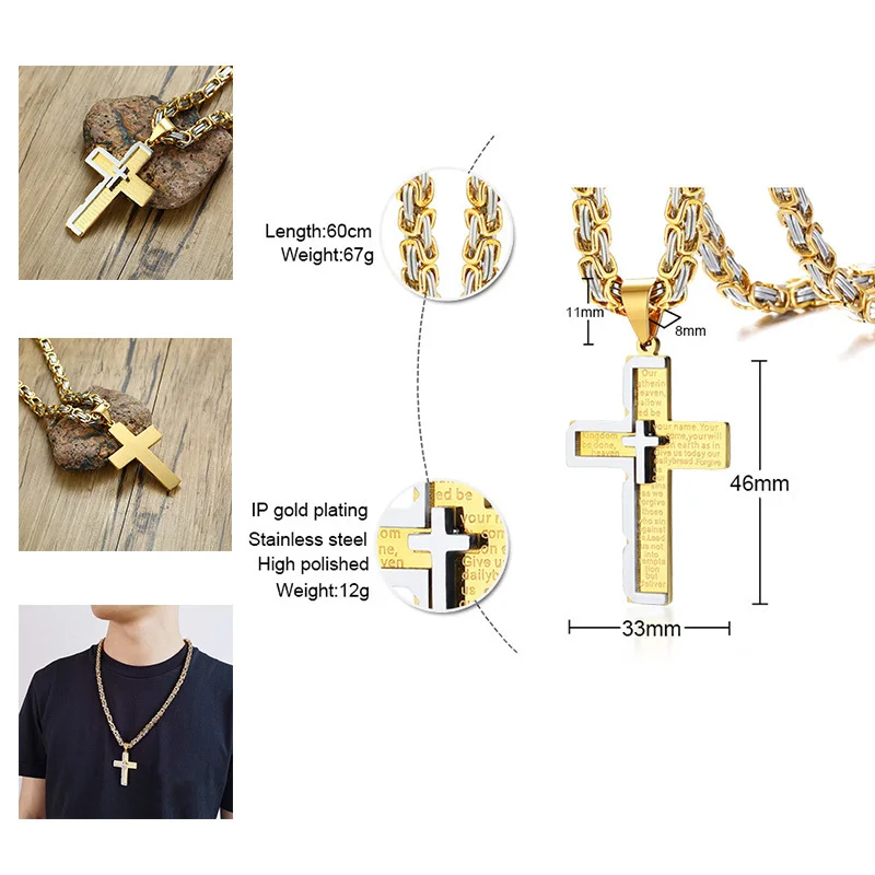amazing Vnox Cross Necklace For Men Byzantine Gold Silver Stainless Steel Chain Catholic Crucifix Pendant M