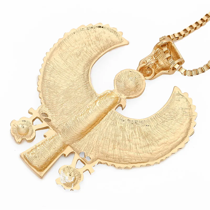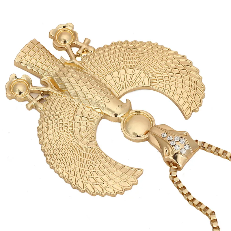 Best Newest Fashion Metal Gold Color Egyptian Horus Bird Falcon Holding Ankh Pendant Necklace Bib Chain