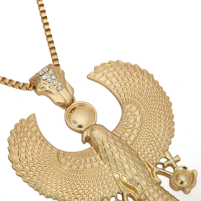 Most effective Newest Fashion Metal Gold Color Egyptian Horus Bird Falcon Holding Ankh Pendant Necklace Bib Chain