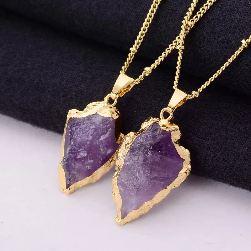 discount SEDmart Purple Crystal Natural Stone Pendant Necklace Arrow Healing Crystal Necklace For Women