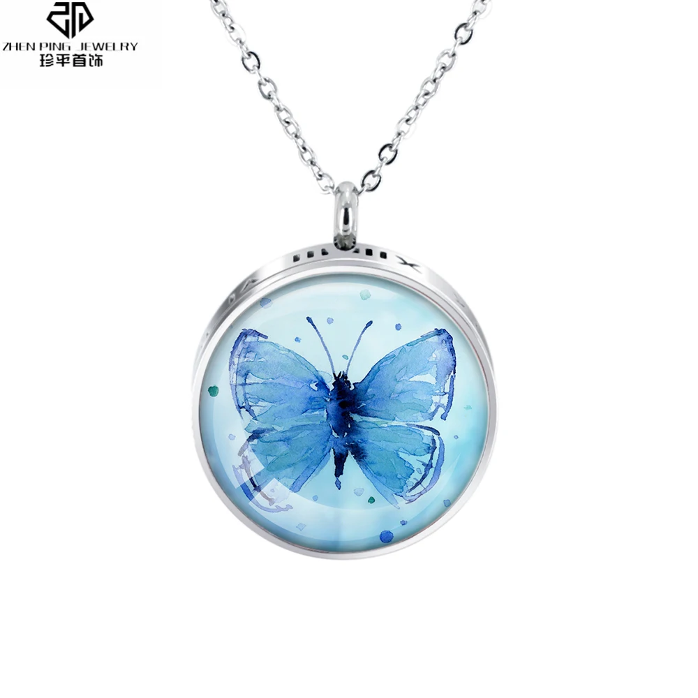 Very best Aromatherapy Diffuser Pendant Stainless Steel Essential Oil Lockets Flower Butterfly Enamel Charms
