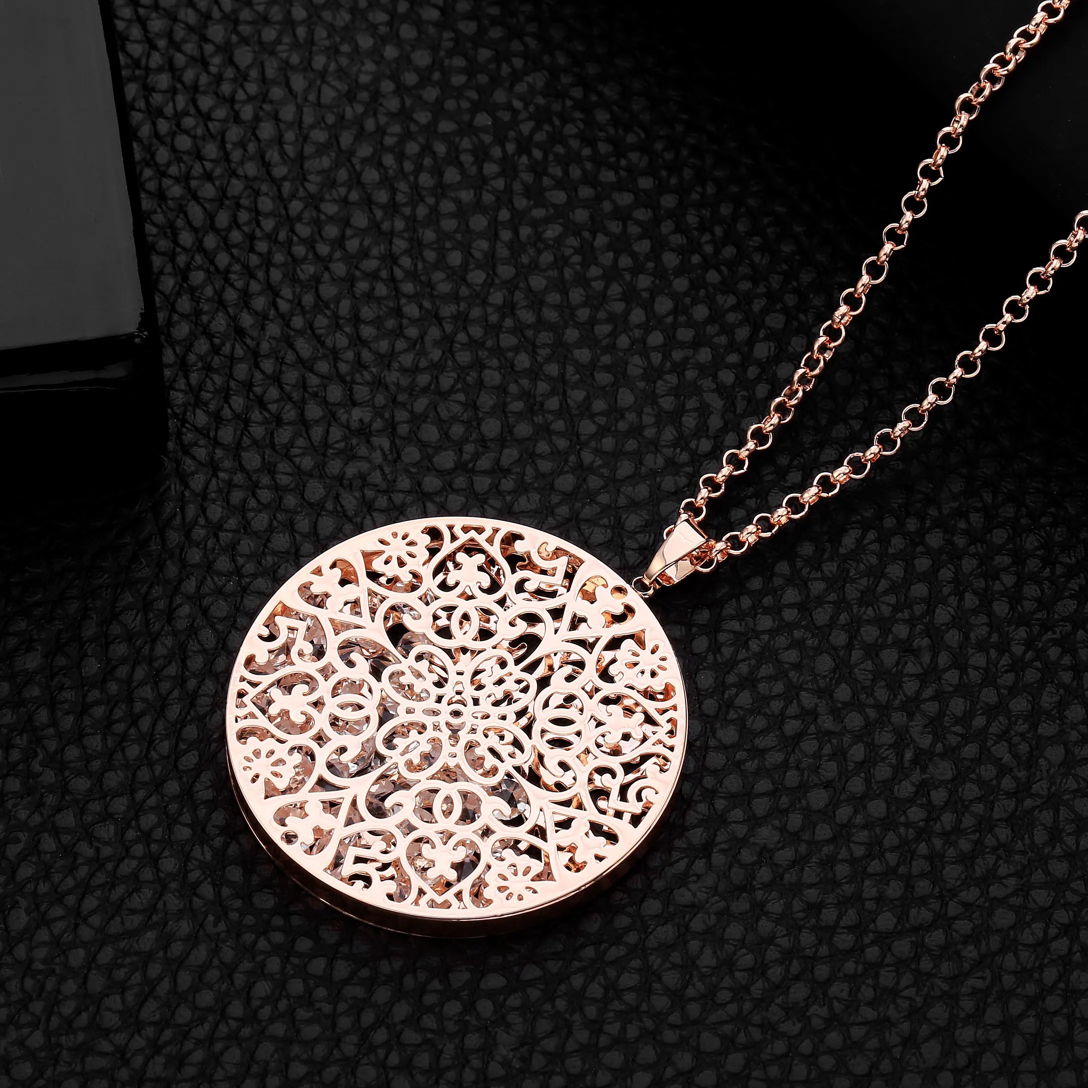 Finest Women's Necklaces Hollow Flower Crystal Locket Gold Silver Pendant Long Necklace Fashion Jewellery