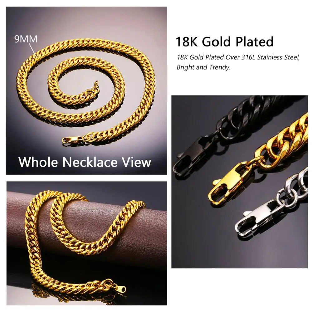 Promo U7 Necklaces For Men Miami Cuban Link Gold Chain Hip Hop Jewelry Long Chains Thick Stainless Steel