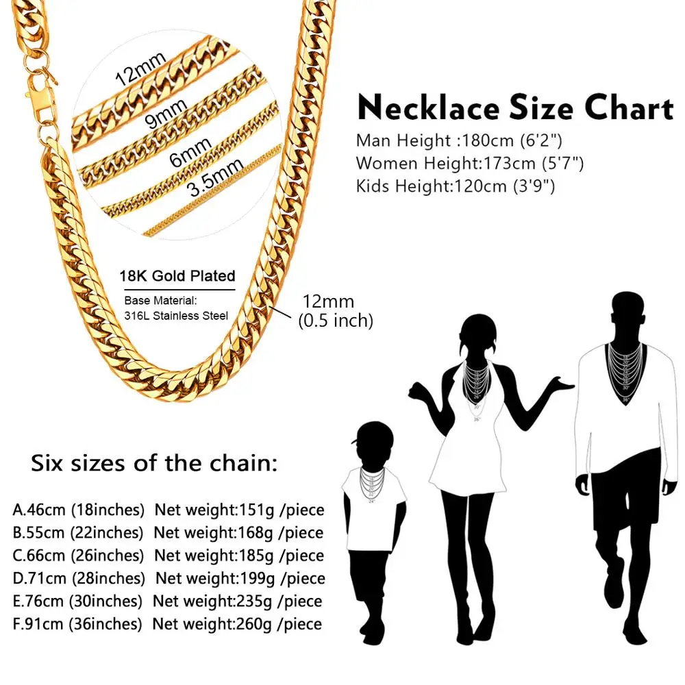 Greatest U7 Necklaces For Men Miami Cuban Link Gold Chain Hip Hop Jewelry Long Chains Thick Stainless Steel