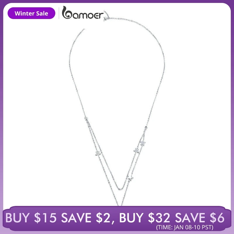 bamoer Double Layer Coin Necklace for Women Genuine 925 Sterling Silver Bead Chain Star Necklaces Female Fine Jewelry SCN365,11.11 Sales 925 Sterling Silver Sparkling Moon and Star Exquisite Pendant Necklaces for Women 925 Silver Jewelry Gift SCN272, 11.11 Sales 925 Sterling Silver Sparkling Moon and Star Exquisite Pendant Necklaces for Women 925 Silver Jewelry Gift SCN272