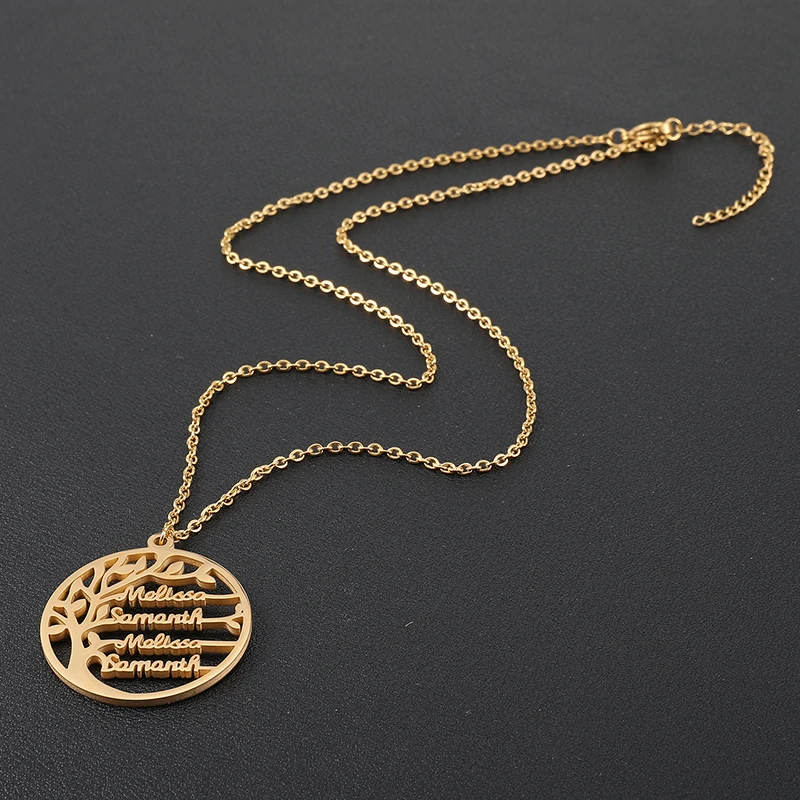 Ideal Custom Name Necklace Tree Of Life Golden Family Tree Women Letter Necklace Stainless Steel Jewelry