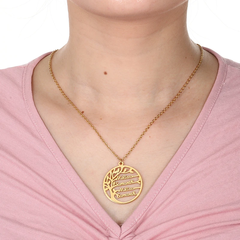 incredible Custom Name Necklace Tree Of Life Golden Family Tree Women Letter Necklace Stainless Steel Jewelry