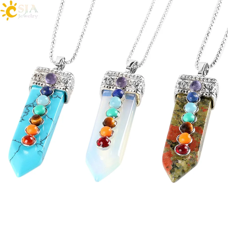 CSJA New Arrival 7 Chakra Wishing Bottle Pendulum Reiki Natural Chip Stone Pendant Necklace for Women Men Divination Amulet F976,CSJA Reiki Natural Gem Stone Sword Pendants Pendulums Labradorite Pink Quartz Lapis Lazuli Black Obsidian Tiger Eye Jewelry F071, CSJA Reiki Natural Gem Stone Sword Pendants Pendulums Labradorite Pink Quartz Lapis Lazuli Black Obsidian Tiger Eye Jewelry F071