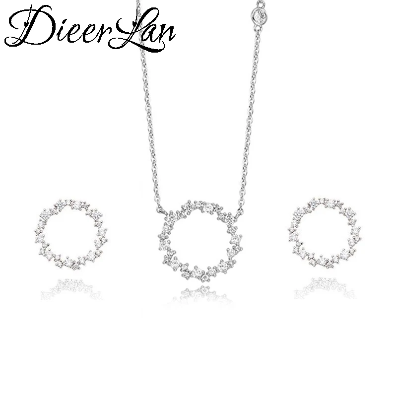 New DIEERLAN Dubai Rhinestone Jewelry Set 925 Sterling Silver Zirconia Circle Earrings Long Chain Choke