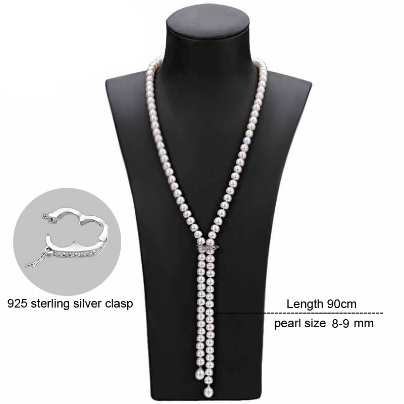 remarkable 900mm Tassel Fashion Long Pearl Necklace Natural Freshwater Pearl 925 Sterling Silver Jewelry For W