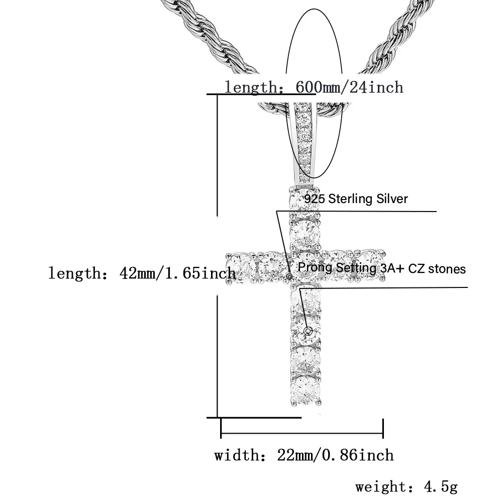buy JINAO New 925 Sterling Silver Pico Harvey Cross Pendant Necklace Micro Pave AAA+ Cubic Zirconia Sto