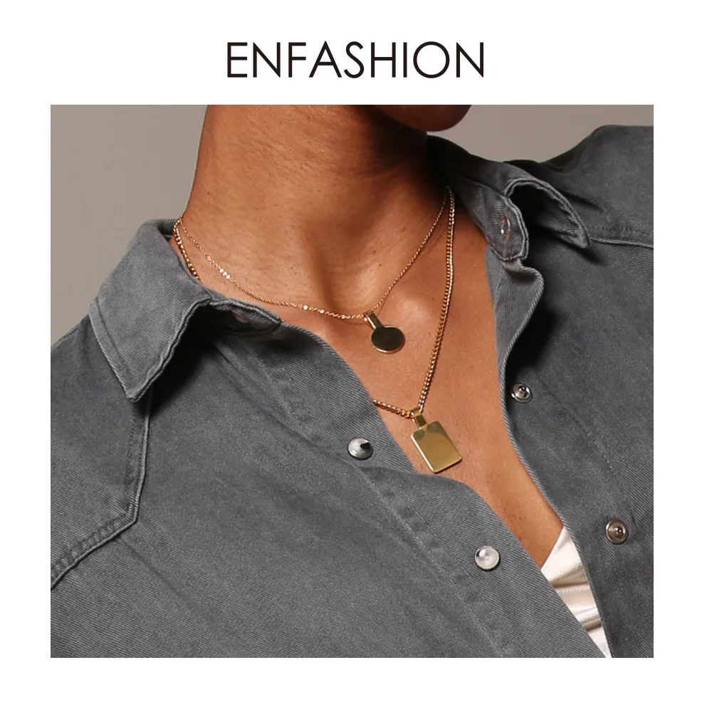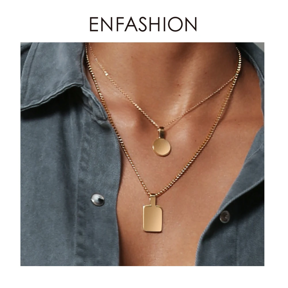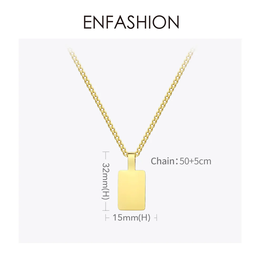 Promo ENFASHION Personalized Engraved Name Necklace Stainless Steel Circle Square Pendant Necklaces For C